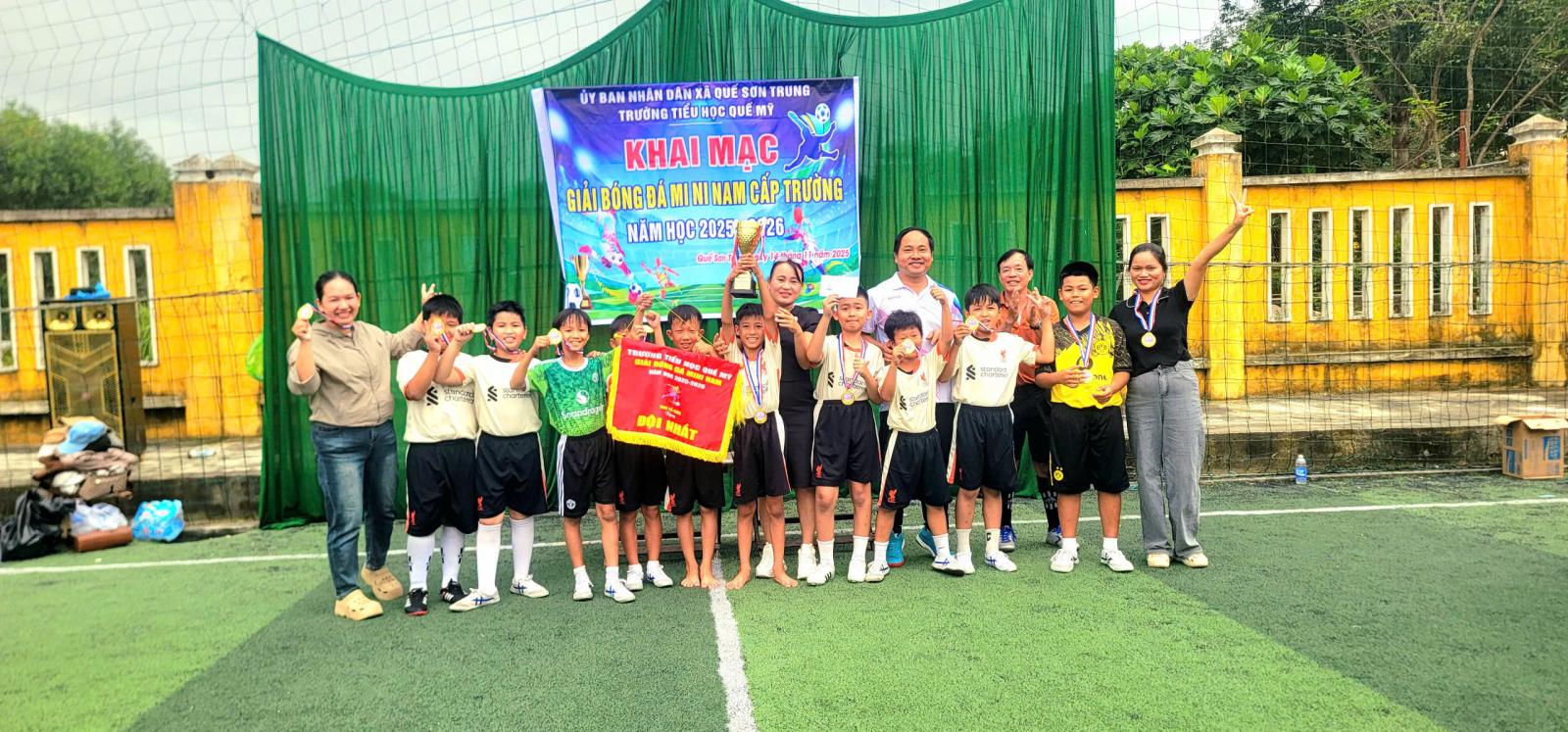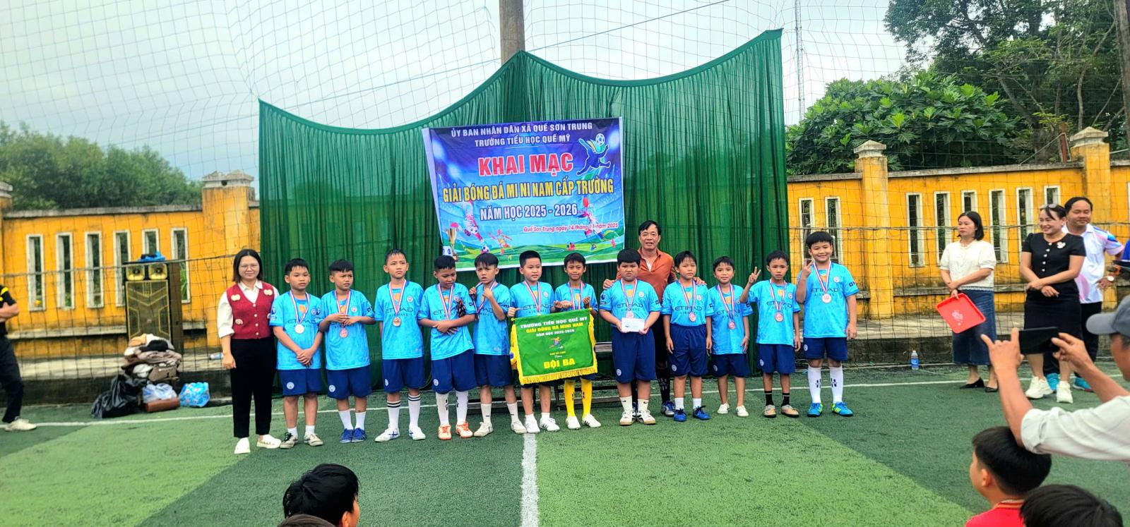 Nhằm tiếp tục duy trì và đẩy mạnh phong trào rèn luyện thân thể theo gương Bác Hồ vĩ đại; tạo điều kiện cho học sinh thường xuyên tập luyện và tham gia thi đấu các môn thể thao trong trường học để nâng cao sức khỏe, phát triển thể chất, góp phần giáo dục toàn diện cho học sinh, trường tiểu học Quế Mỹ tổ chức Giải Bóng đá Mini cấp trường năm học 2025–2026.